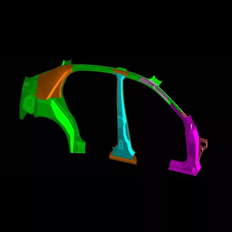 बाजूचे पॅनेल आतील पॅनेल आकाराने मोठे आहे (लांबी 800 मिमी पेक्षा जास्त आणि रुंदी 600 मिमी पेक्षा जास्त) आणि एक जटिल आकार आहे, ज्यासाठी अनेक वैशिष्ट्ये तयार करणे आवश्यक आहे. SIKAIDA ऑटोमोटिव्ह साइड पॅनेल इनर असेंबली स्टॅम्पिंग डायजमध्ये उच्च पृष्ठभागाची अचूकता, एकाधिक मुक्त-फॉर्म पृष्ठभाग आणि तर्कसंगत संरचनात्मक डिझाइनची वैशिष्ट्ये आहेत, ज्यामुळे मोठ्या शीट मेटलच्या स्टॅम्पिंग दरम्यान असमान शक्ती वितरणाची समस्या सोडवली जाते.